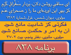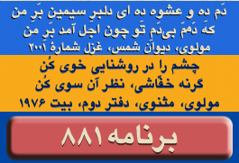 مولوی، دیوان شمس، غزل شمارهٔ ۲۸۲۰ Rumi( Molana Jalaleddin) Poem(Qazal)# 2820, Divan e Shams