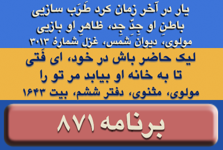 مولوی، مثنوی، دفتر سوم، بیت ۱۸۷۸ Rumi( Molana Jalaleddin) Poem(Mathnavi), Book #3, Line #1878