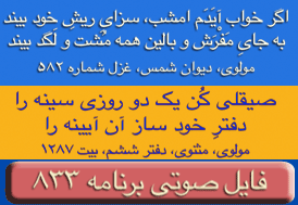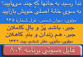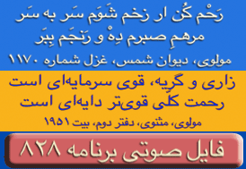 مولوی، مثنوی، دفتر سوم، بیت ۹۸۲ Rumi( Molana Jalaleddin) Poem(Mathnavi), Book # 3, Line # 982