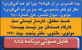 مولوی، دیوان شمس، غزل شماره ۱۳۴۴ Rumi( Molana Jalaleddin) Poem(Qazal)# 1344, Divan e Shams
