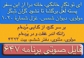 Rumi (Molana Jalaleddin) Poem (Qazal) # 2214, Divan e Shams