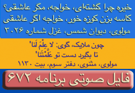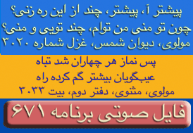Rumi (Molana Jalaleddin) Poem (Mathnavi), Book #4, Line # 1670
