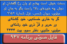 Rumi (Molana Jalaleddin) Poem (Qazal) #237, Divan e Shams