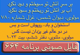 Rumi( Molana Jalaleddin) Poem(Mathnavi), Book # 4, Line # 2873