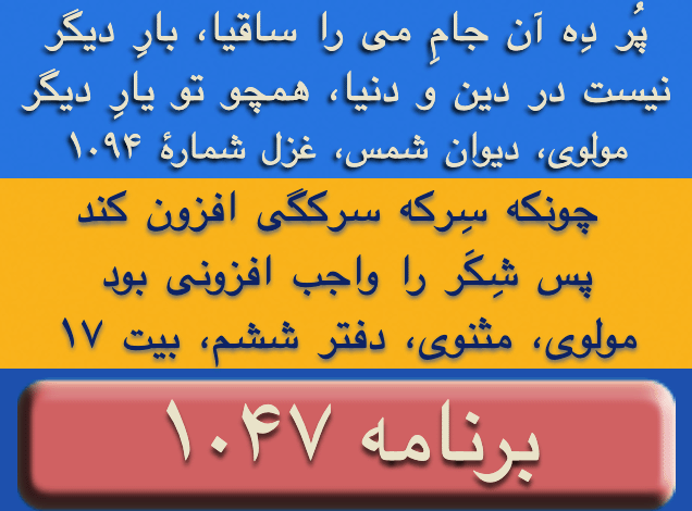 Rumi (Molana Jalaleddin) Poem (Qazal) #1094, Divan e Shams