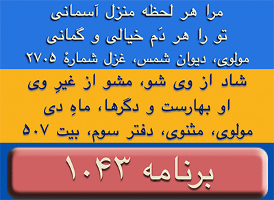 مولوی، دیوان شمس، غزل شمارهٔ ۲۷۰۵ Rumi (Molana Jalaleddin) Poem (Qazal) #2705, Divan e Shams
