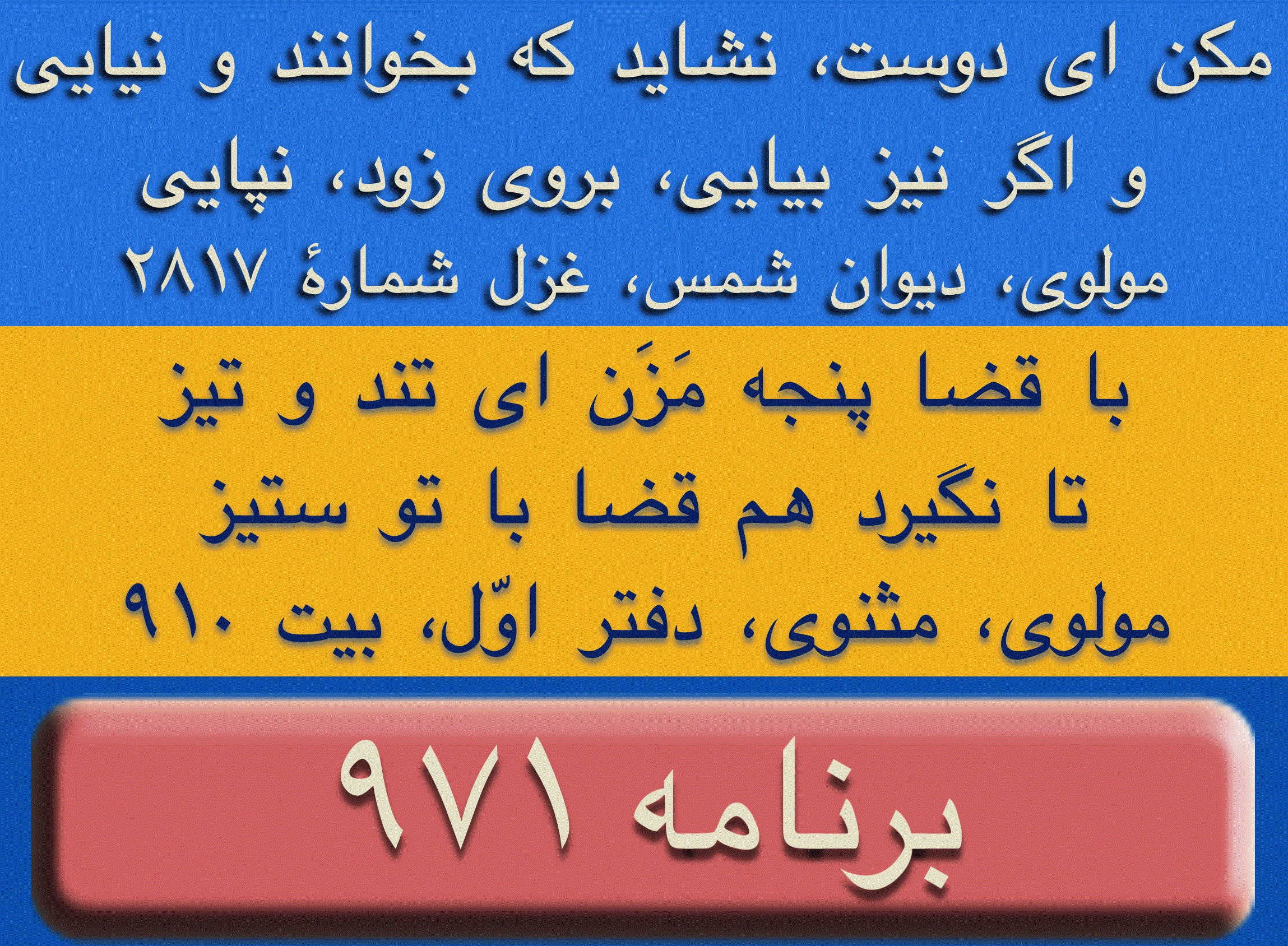 Rumi (Molana Jalaleddin) Poem (Mathnavi), Book #5, Line #1221